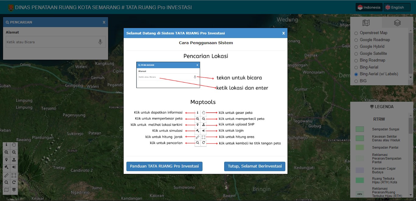 Mengimplementasikan suatu sistem yang mampu menjawab kebutuhan investasi di Kota Semarang dimana masyarakat/investor dapat mengakses informasi tata ruang secara mudah serta melakukan simulasi investasi di Kota Semarang secara online sehingga calon investor akan merasakan kemudahan, akurat, cepat dan tanpa biaya dalam memulai suatu studi kelayakan dan kegiatan investasi di Kota Semarang.