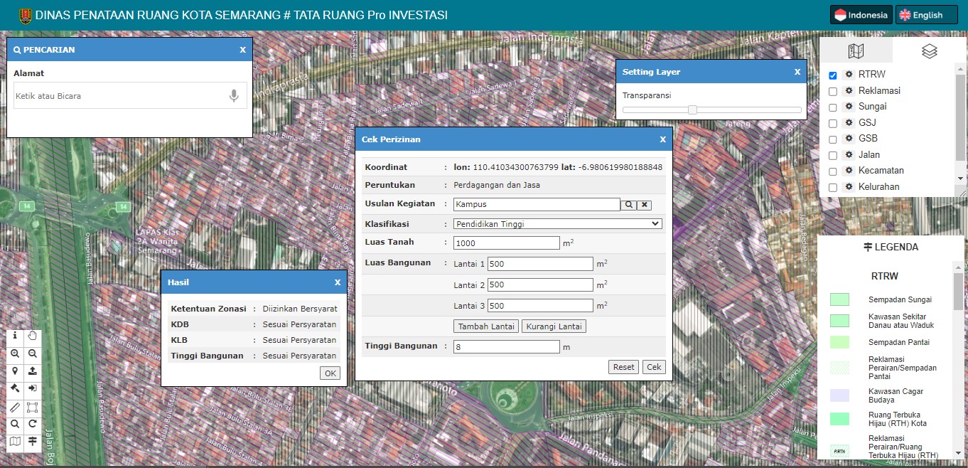 Sistem ini menerapkan prinsip Smart Governance dalam penataan ruang, dengan memadukan aspek teknologi, partisipasi publik, transparansi data, dan akuntabilitas kebijakan. Pendekatan ini menjadikan tata ruang sebagai bagian integral dari Smart City Semarang. |