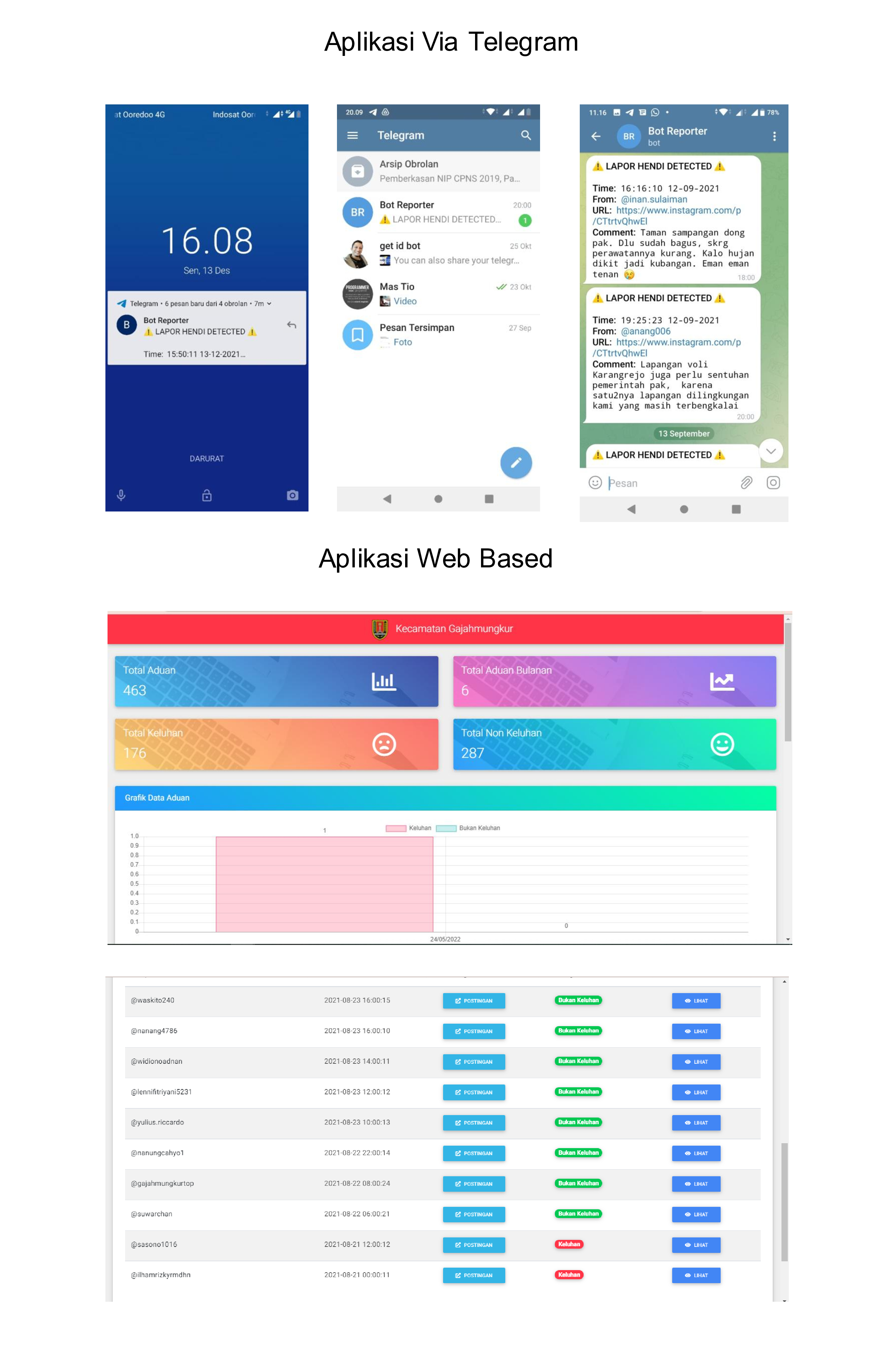 Dengan adanya aplikasi Bot Instagram – Monitoring dan Filter keluhan warga (khususnya wilayah Kecamatan Gajahmungkur) di Kolom Komentar IG (Instagram) Walikota Semarang, dapat mengetahui lebih awal keluhan yang disampaikan, dengan team petugas Medsos Kecamatan, bergerak cepat untuk membalas keluhan tersebut, kemudian mengkoordinasikan dengan pihak – pihak terkait dalam menindaklanjuti keluhan tersebut.