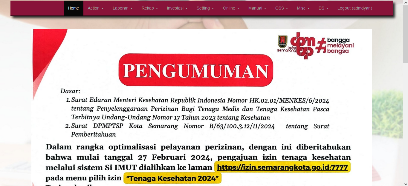 Ditempatkan pada halaman sebelum login SIIMUT, halaman Web DPMPTSP kota Semarang, Web MPP Kota Semarang.