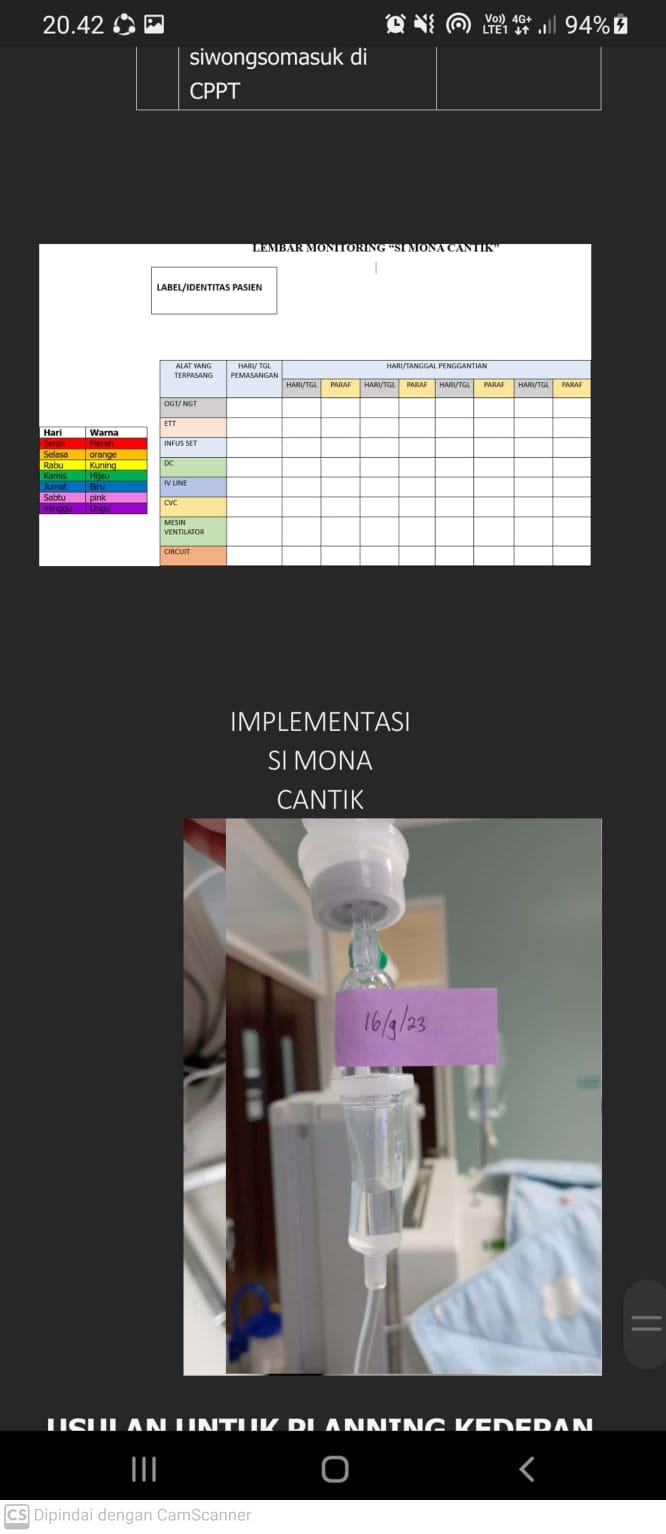 1. Input data di rekam medik elektronik dan dengan penambahan Implentasi Langsung Dengan Menempelkan Label Warna Sesuai Hari Diganti (LESUNG PILAR HATI) 2. Monitoring dilakukan hanya pada saat pasien di rumah sakit 3. Informasi perkembangan pasien di informasikan kepada keluarga dengan aplikasi Sirindu sehingga Tingkat kepuasan keluarga pasien menjadi |