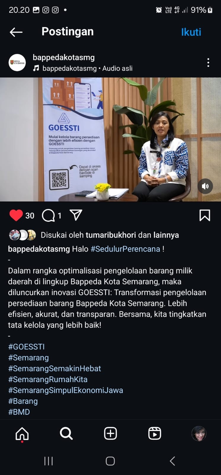 Implementasi GOESSTI sebagai system pengelolaan barang persediaan digital telah mampu membantu dalam penyusunan laporan persediaan secara tepat waktu dan juga mendukung dalam penyusunan laporan keuangan Pemerintah Kota Semarang sehingga di tahun 2025 mampu mempertahankan opini Wajar Tanpa Pengecualian (WTP) dari BPK.